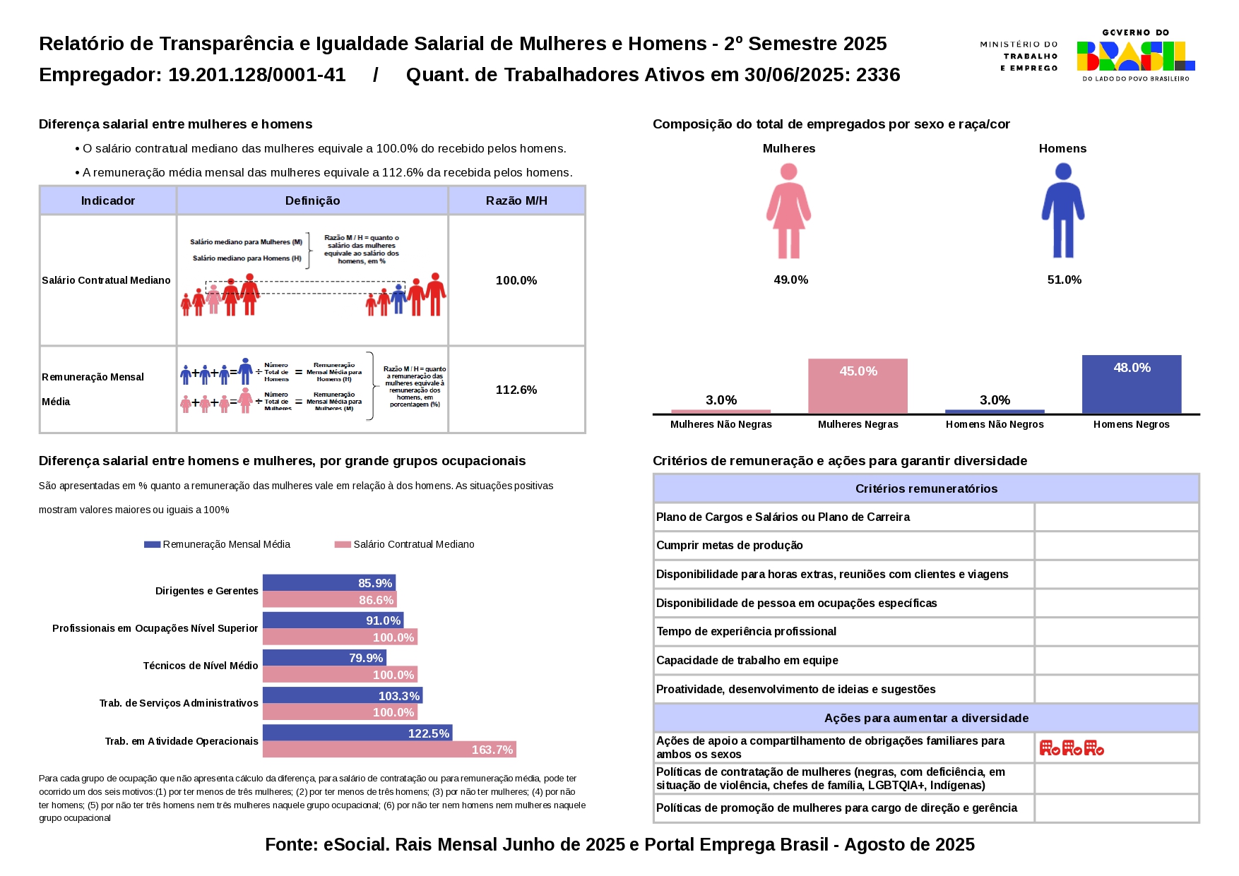 Em nosso compromisso com a transparência e a igualdade salarial, divulgamos hoje, 23/09/2025, o Relatório de Transparência e Igualdade Salarial do 2º Semestre de 2025.
