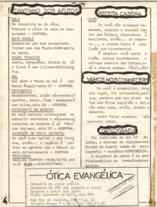 A participação dos jovens cresceu rápido. Entre 1989 e 1991, o jornal virou um espaço de convivência. Surgiu o divertido “Cantinho dos Aflitos”, que anunciava de tudo um pouco, de bolos a pôsteres do Raul Seixas. Era humor, troca e leveza em cada edição do jornal Voz&Vez.