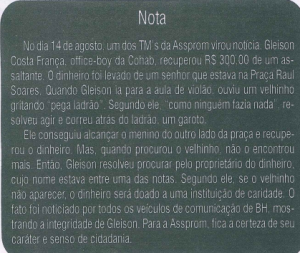A coluna “Histórias de Vida”, que surgiu nesta mesma época, destacou trajetórias reais de ex-assproms e segue ativa até hoje. Inclusive, nessa época, um gesto de honestidade emocionou a instituição: o adolescente Gleison recuperou o dinheiro roubado de um idoso e foi reconhecido pelo ato com congratulações da equipe da Assprom e também de alguns leitores do jornal.